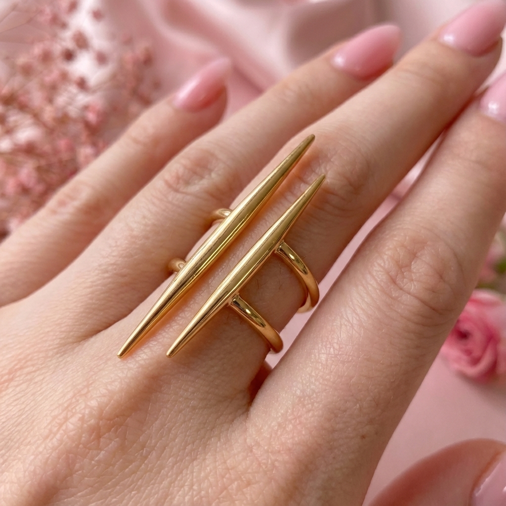 Sleek Double Spike Ring – Sharp, minimalist lines that add an edgy, fashion-forward touch to your collection.